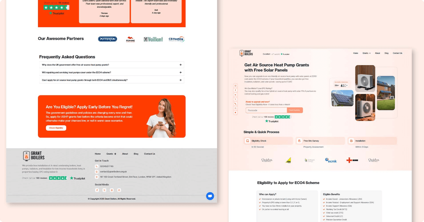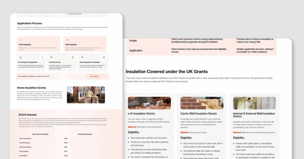 As ECO4 grants are publicly funded, compliance was paramount. We made certain that all copy, data handling, and eligibility processes complied with OFGEM guidelines.